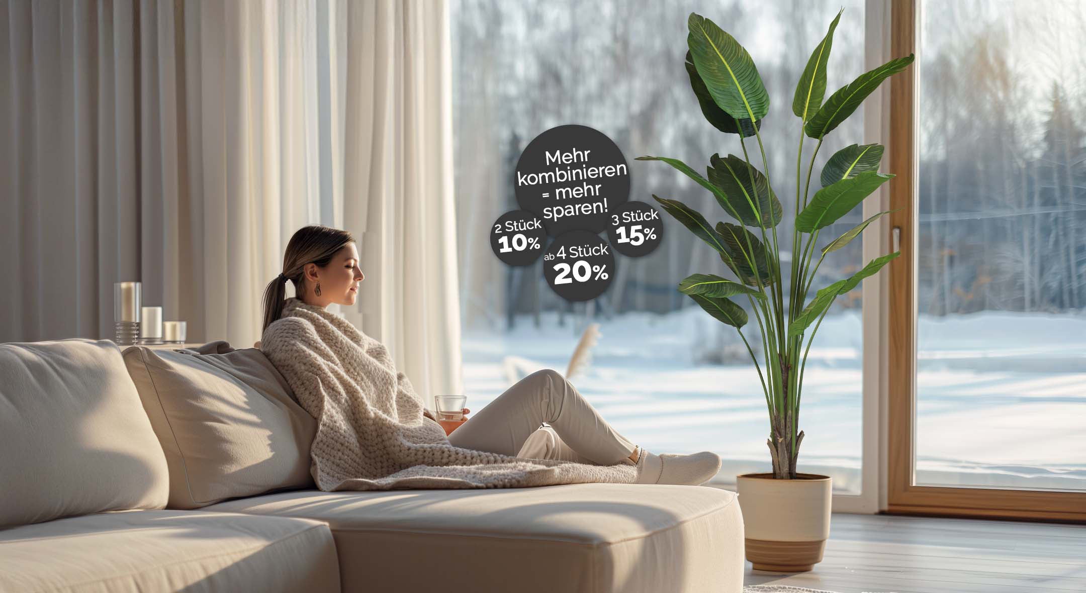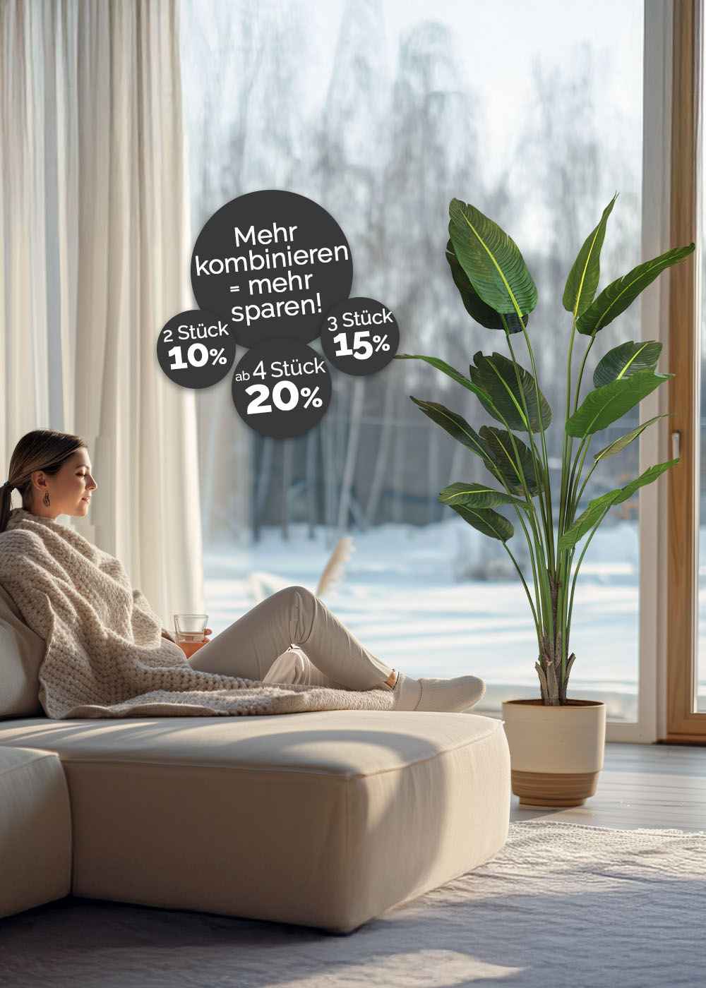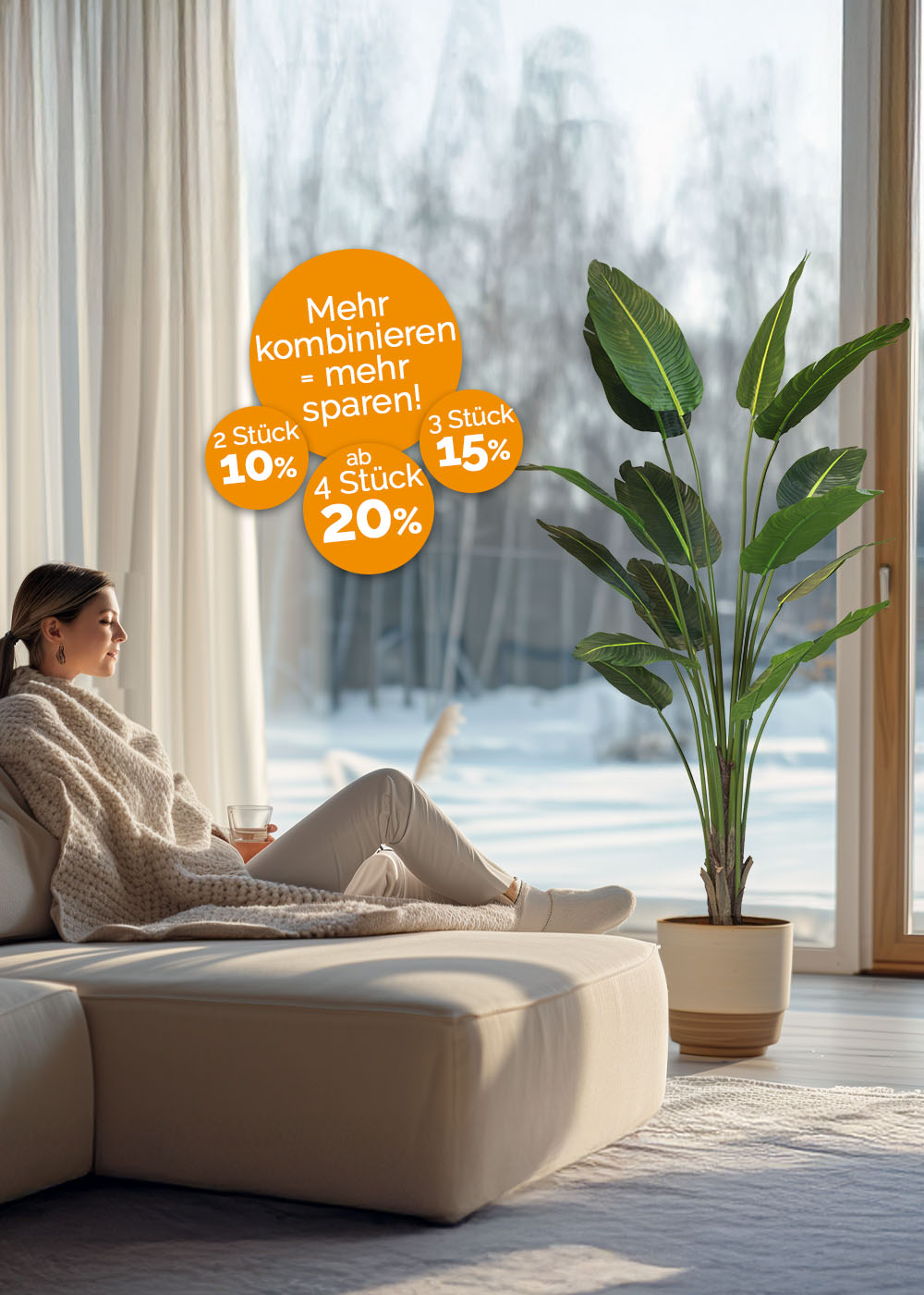 „Keine Pollen, kein Schimmel, keine Schädlinge. Unsere Kunstpflanzen sind 100% allergikerfreundlich und sorgen für ein dauerhaft stabiles Raumklima.“